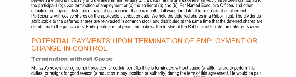Potential Payments Upon Termination of Employment or Change-In-Control