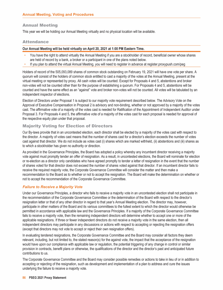 Annual Meeting, Voting and Procedures