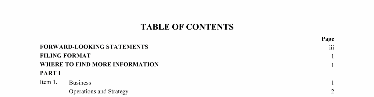 Table of Contents