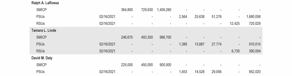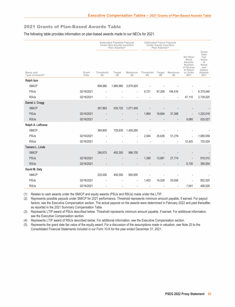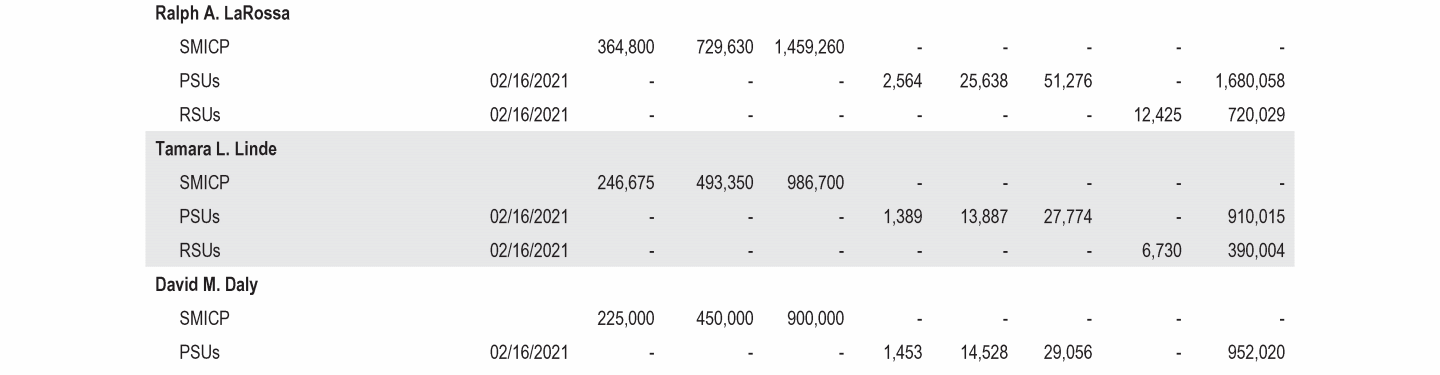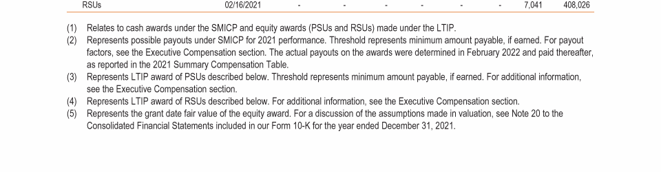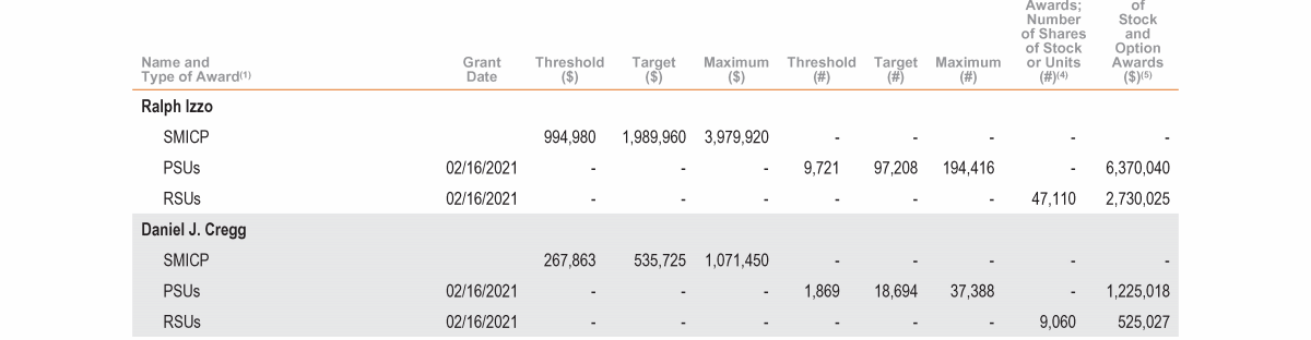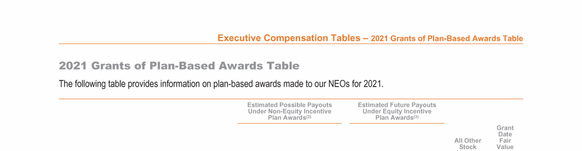 - 2021 Grants of Plan-Based Awards Table