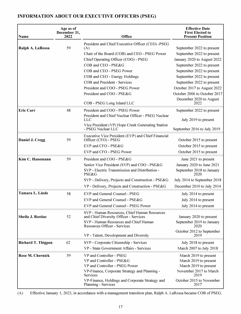 - Information About Our Executive Officers (PSEG)