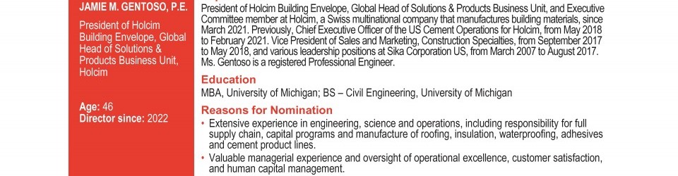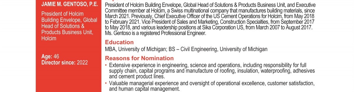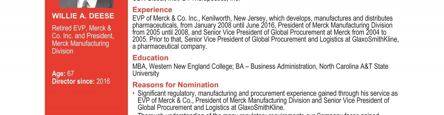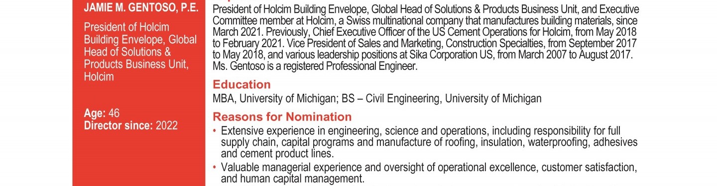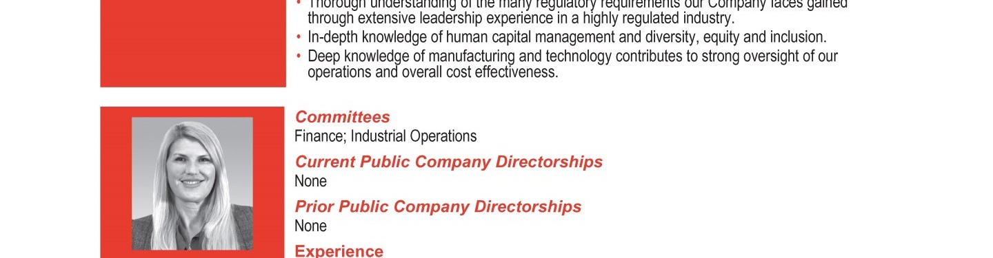 Review our director nominees' biographies, skills/qualifications, committees, and more in our interactive