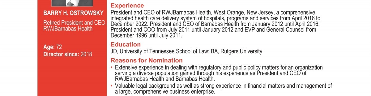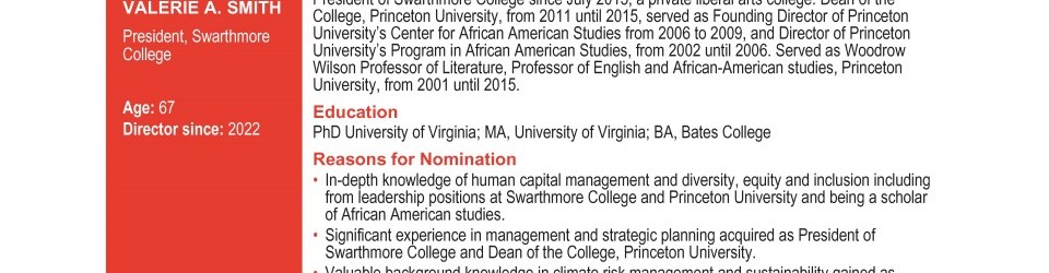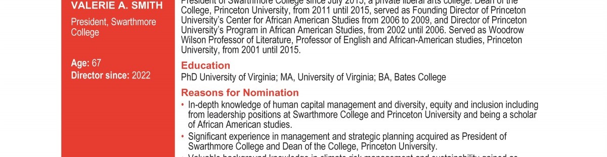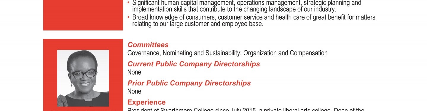 Review our director nominees' biographies, skills/qualifications, committees, and more in our interactive
