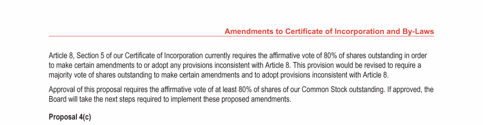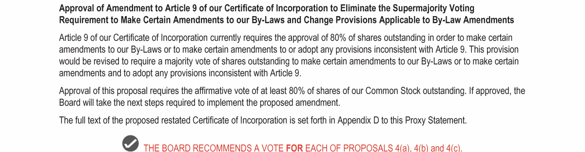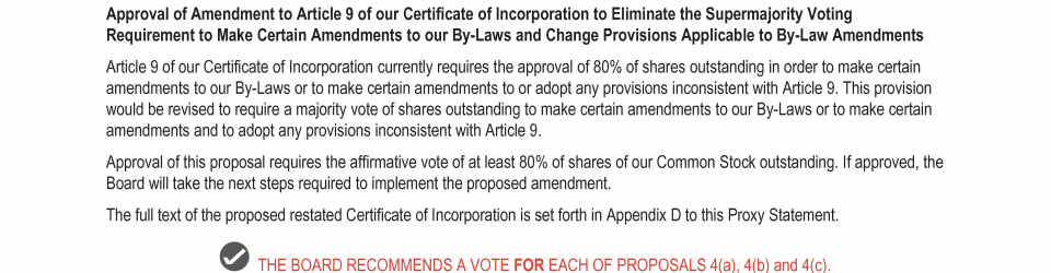 Proposal 4: Amendments to Certificate of Incorporation and By-Laws