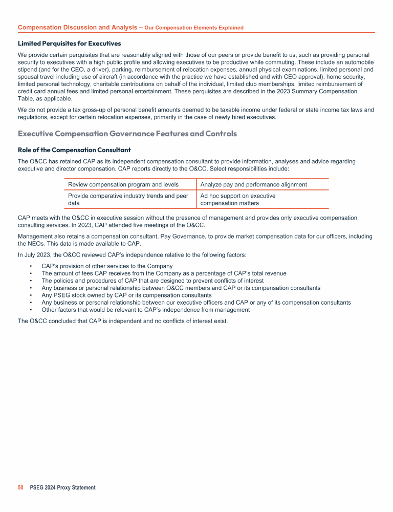 - Executive Compensation Governance Features and Controls