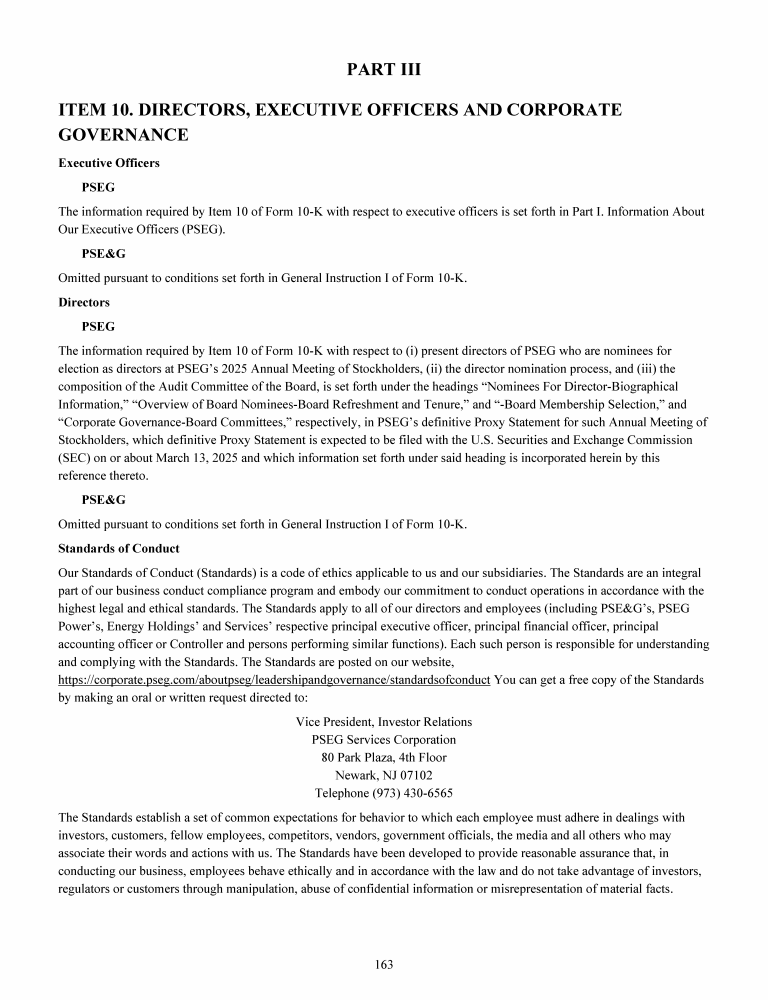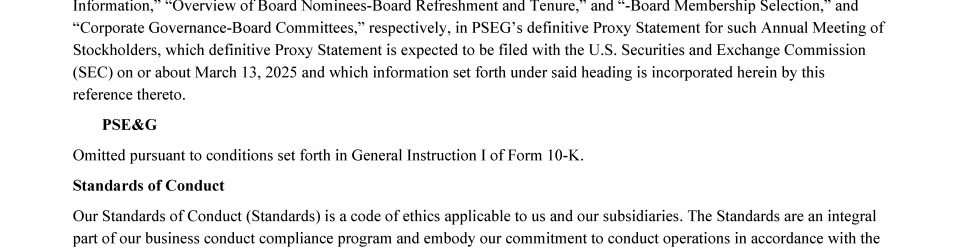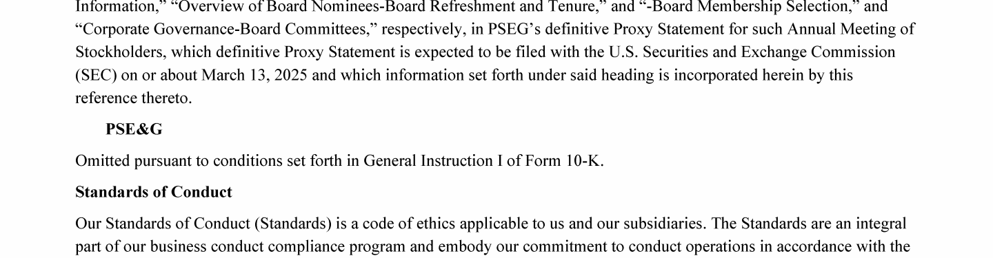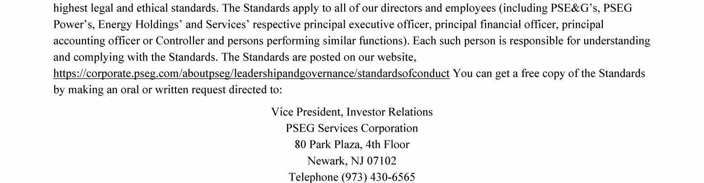 Click here to go to corporate.pseg.com/aboutpseg/leadershipandgovernance/standardsofconduct Click here to go to corporate.pseg.com/aboutpseg/leadershipandgovernance/standardsofconduct Click here to go to corporate.pseg.com/aboutpseg/leadershipandgovernance/standardsofconduct Click here to go to corporate.pseg.com/aboutpseg/leadershipandgovernance/standardsofconduct Click here to go to corporate.pseg.com/aboutpseg/leadershipandgovernance/standardsofconduct