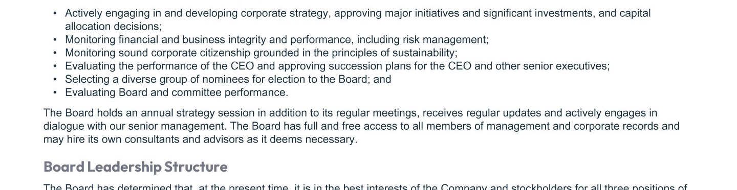 Review our director nominees' biographies, skills/qualifications, committees, and more in our interactive MEET the BOARD format.