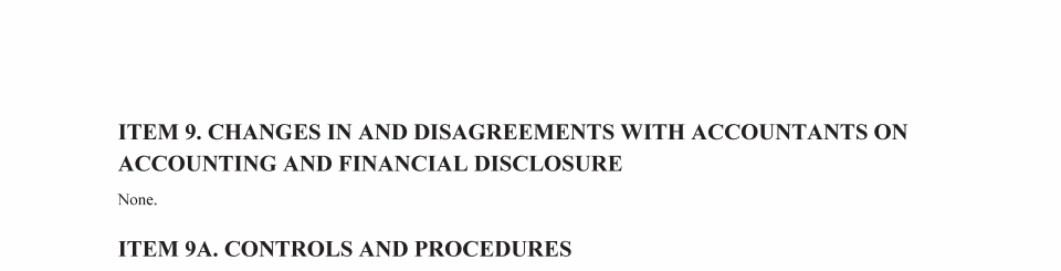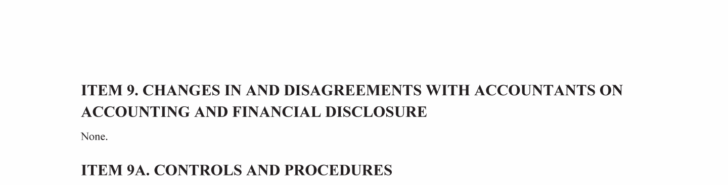 9. Changes In and Disagreements With Accountants on Accounting and Financial Disclosure
