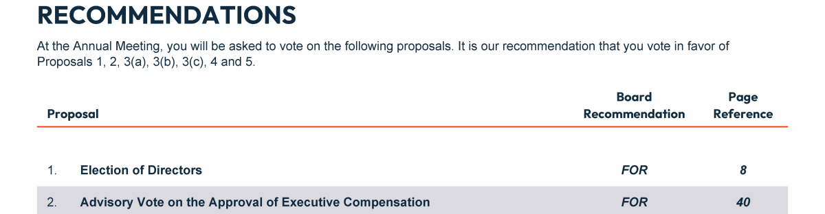 Proxy Statement Summary