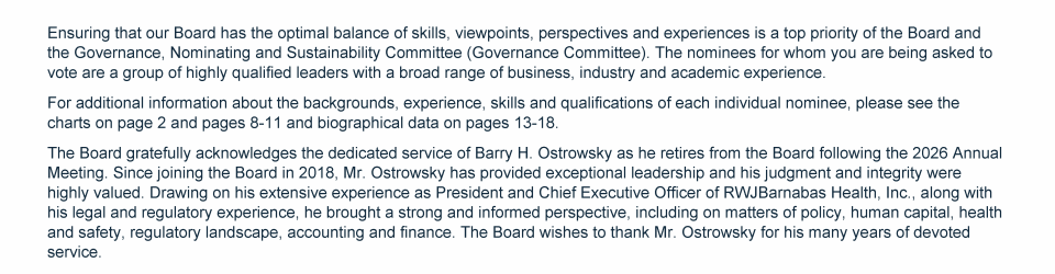 Overview of Board Nominees