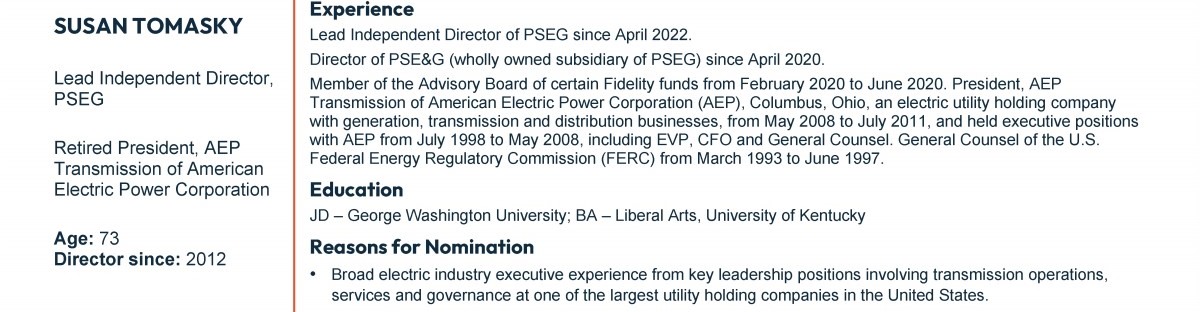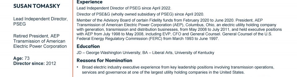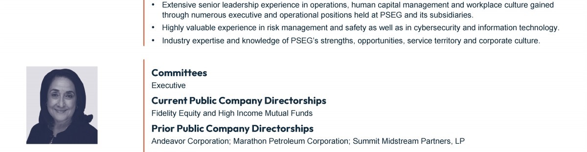 Review our director nominees' biographies, skills/qualifications, committees, and more in our interactive MEET the BOARD format.
