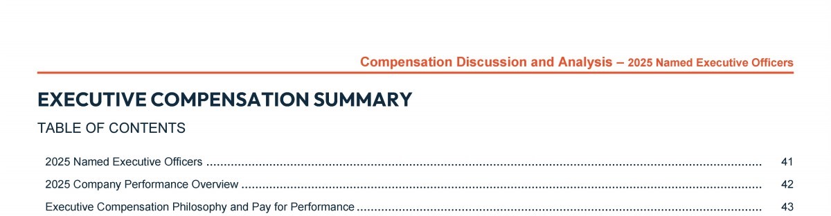 Click to view 2025 Named Executive Officers Click to view 2025 Company Performance Overview Click to view Executive Compensation Philosophy and Pay for Performance Click to view 2025 Named Executive Officers Click to view 2025 Company Performance Overview Click to view Executive Compensation Philosophy and Pay for Performance Click to view 2025 Named Executive Officers Click to view 2025 Company Performance Overview Click to view Executive Compensation Philosophy and Pay for Performance Click to view Executive Compensation Click to view Say-On-Pay and Shareholder Engagement Click to view Executive Compensation Best Practices Click to view Peer Comparison and Benchmarking Click to view How We Compensate Our Executives Click to view Our Compensation Elements Explained Click to view Executive Compensation Governance Features and Controls Click to view Accounting and Tax Implications Click to view Compensation Committee Interlocks and Insider Participation Click to view Executive Compensation Tables Click to view Executive Compensation Click to view Say-On-Pay and Shareholder Engagement Click to view Executive Compensation Best Practices Click to view Peer Comparison and Benchmarking Click to view How We Compensate Our Executives Click to view Our Compensation Elements Explained Click to view Executive Compensation Governance Features and Controls Click to view Accounting and Tax Implications Click to view Compensation Committee Interlocks and Insider Participation Click to view Executive Compensation Tables Click to view Executive Compensation Click to view Say-On-Pay and Shareholder Engagement Click to view Executive Compensation Best Practices Click to view Peer Comparison and Benchmarking Click to view How We Compensate Our Executives Click to view Our Compensation Elements Explained Click to view Executive Compensation Governance Features and Controls Click to view Accounting and Tax Implications Click to view Compensation Committee Interlocks and Insider Participation Click to view Executive Compensation Tables Click to view Executive Compensation Tables Click to view Executive Compensation Tables Click to view Executive Compensation Tables Click to view 2025 Named Executive Officers Click to view 2025 Company Performance Overview Click to view Executive Compensation Philosophy and Pay for Performance Click to view Executive Compensation Tables Click to view Executive Compensation Click to view Say-On-Pay and Shareholder Engagement Click to view Executive Compensation Best Practices Click to view Peer Comparison and Benchmarking Click to view How We Compensate Our Executives Click to view Our Compensation Elements Explained Click to view Executive Compensation Governance Features and Controls Click to view Accounting and Tax Implications Click to view Compensation Committee Interlocks and Insider Participation Click to view Executive Compensation Tables Click to view 2025 Named Executive Officers Click to view 2025 Company Performance Overview Click to view Executive Compensation Philosophy and Pay for Performance Click to view Executive Compensation Tables Click to view Executive Compensation Click to view Say-On-Pay and Shareholder Engagement Click to view Executive Compensation Best Practices Click to view Peer Comparison and Benchmarking Click to view How We Compensate Our Executives Click to view Our Compensation Elements Explained Click to view Executive Compensation Governance Features and Controls Click to view Accounting and Tax Implications Click to view Compensation Committee Interlocks and Insider Participation Click to view Executive Compensation Tables