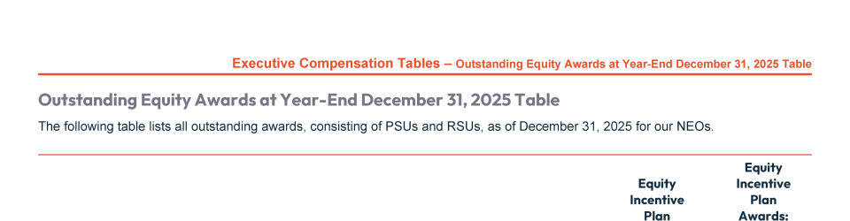 - Outstanding Equity Awards at Year-End December 31, 2025 Table