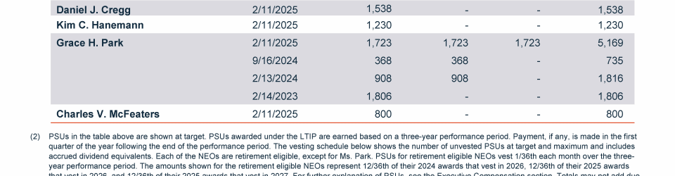 - 2025 Grants of Plan-Based Awards Table