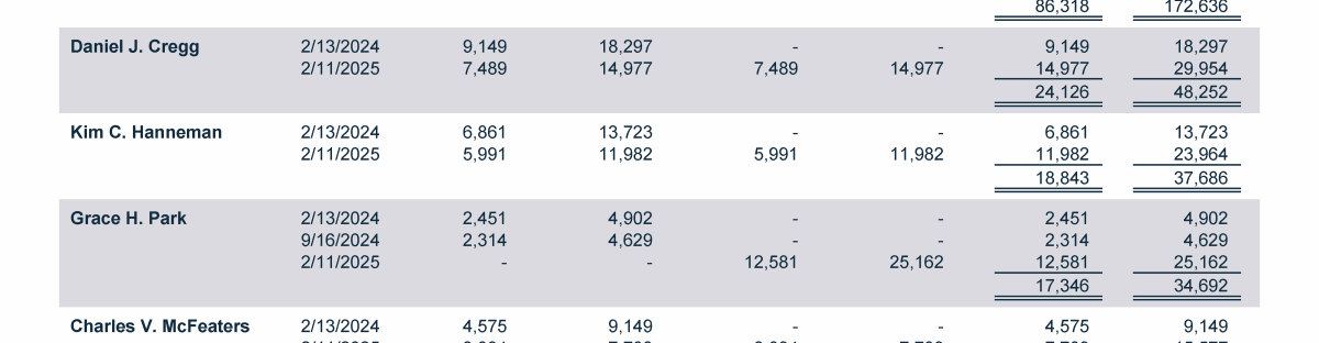 - 2025 Grants of Plan-Based Awards Table