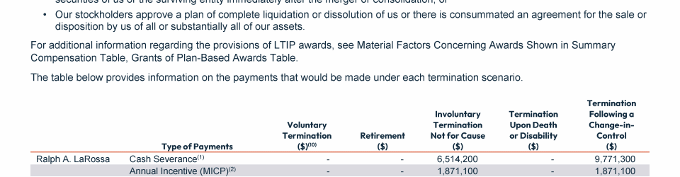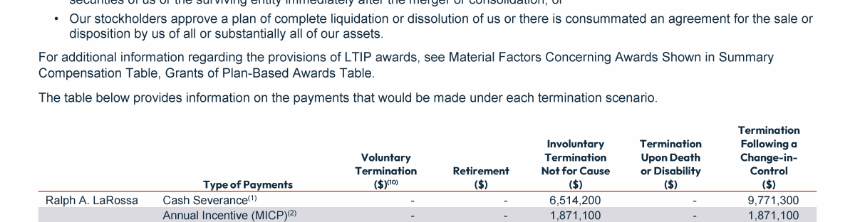 Potential Payments Upon Termination of Employment or Change-In-Control