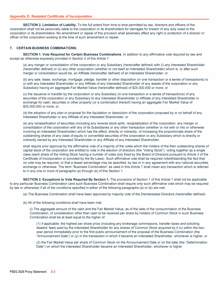 Appendix D: Restated Certificate of Incorporation